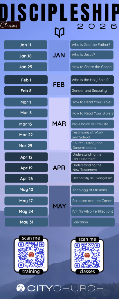 Welcome to the BICF City Church 2026 Discipleship Classes. These courses are designed to equip believers with a deeper understanding of God, Scripture, and how to live out faith in everyday life. Our goal is to nurture spiritual growth, deepen theological understanding, and empower each member for faithful ministry.