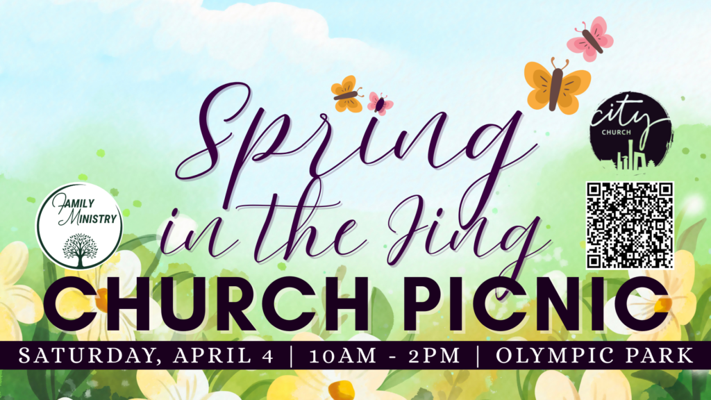 Spring is just around the corner and we want to welcome it by connecting with one another outside of the walls of our church home. We invite you to join us for a church-wide picnic on Saturday, April 4 at Olympic Park from 10am – 2pm.