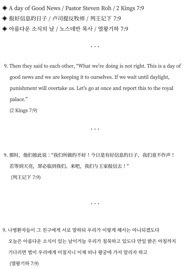 A day of Good News / 报好信息的日子 / 아름다운 소식의 날 10/26/2025 Steven Roh BICF Korean ◈ Youtube Link ☞ https://youtu.be/-pZ9B4juuSQ Post Views: 2